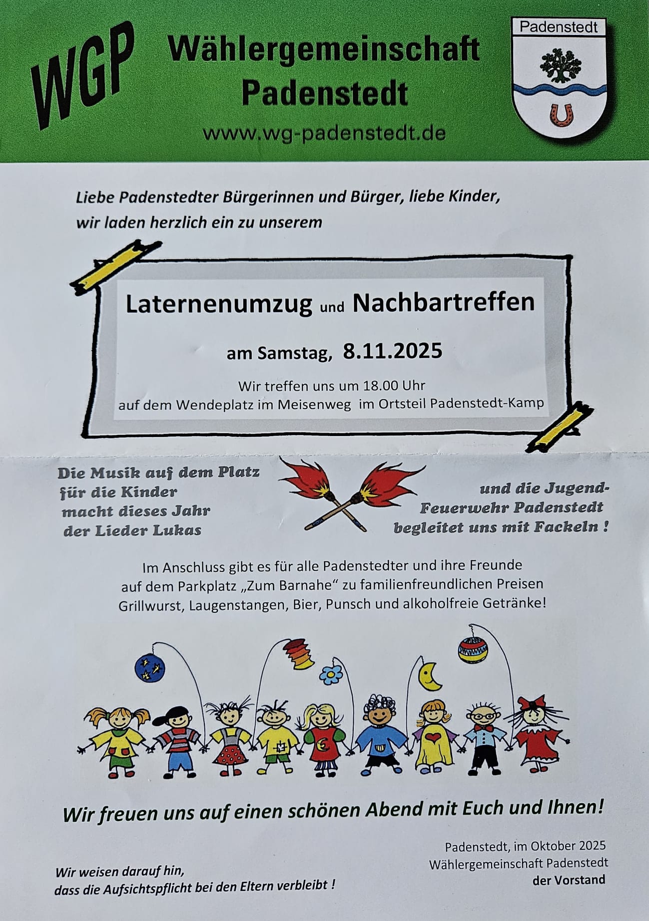 Beim gemütlichen Ausklang mit Grillwurst, Punsch, Bier und Softdrinks sind alle Padenstedter, ob mit oder ohne Kindern, herzlich willkommen.